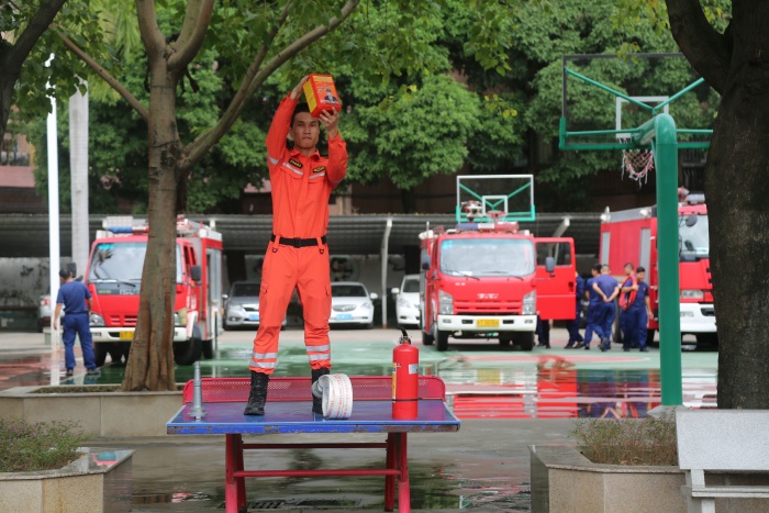 疏散演練開始,急促的警報(bào)聲響徹校園,各樓層疏散老師立即到崗,上課教師第一時(shí)間組織好學(xué)生,同學(xué)們用濕毛巾或手捂住口鼻,彎腰有序地從指定樓道迅速撤離,全校九百余名師生在不到兩分鐘的時(shí)間里迅速地撤離到安全地帶。然后學(xué)生觀看了模擬火災(zāi)現(xiàn)場消防員是如何把火撲滅的。演練結(jié)束后,西區(qū)消防中隊(duì)的牛警官就本次消防應(yīng)急疏散演練活動做了總結(jié)講話,他希望全體學(xué)生要加強(qiáng)學(xué)習(xí)安全自護(hù)知識,不斷提高自救、自護(hù)能力,遇到突發(fā)事件能保持冷靜頭腦,沉著、有序、快速地撤離到安全地帶。消防隊(duì)的指揮員還給全體師生講解滅火器的使用方法,并現(xiàn)場演示如何滅火;給全體師生講解火災(zāi)現(xiàn)場防毒面具及消防水帶的正確使用。師生們個(gè)個(gè)聽得認(rèn)真,更是興致高昂地舉手要現(xiàn)學(xué)現(xiàn)用,都想操作一下滅火器的使用。