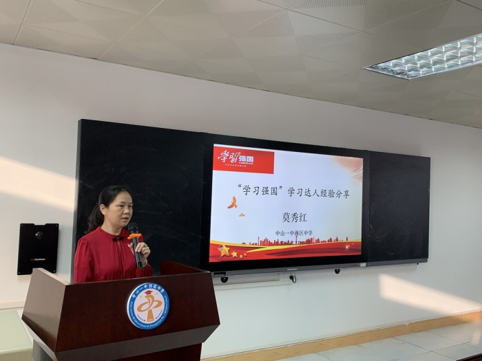 首先,由學(xué)?!皩W(xué)習(xí)強(qiáng)國”學(xué)習(xí)達(dá)人莫秀紅同志、劉新泉同志分享學(xué)習(xí)經(jīng)驗。