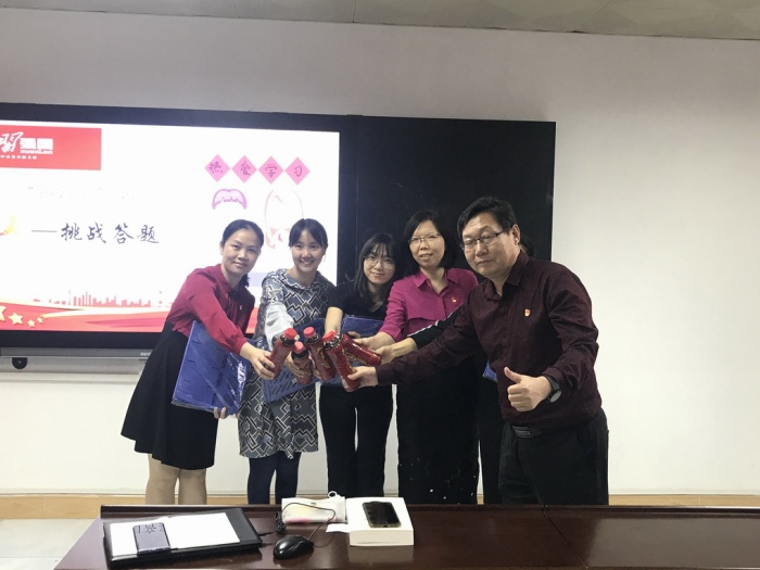 接著,卓瓊彩主任作賽前講話:“學(xué)習(xí)強(qiáng)國不僅可以提高大家的思想覺悟、政治素養(yǎng),還可以充實大家的業(yè)余生活。祝愿大家能在本次挑戰(zhàn)答題中取得優(yōu)異成績?!比w教師按照賽前抽簽的組別馬上組隊,各組隊員摩拳擦掌迅速部署答題策略。選手們用“學(xué)習(xí)強(qiáng)國”平臺的“挑戰(zhàn)答題”功能板塊,將平時的真實學(xué)習(xí)場景和學(xué)習(xí)狀態(tài)直接帶進(jìn)賽場,大家精神飽滿、斗志昂揚(yáng)、沉著應(yīng)對,既體現(xiàn)個人風(fēng)采,又展現(xiàn)出團(tuán)隊合作精神。經(jīng)過激烈角逐,最終由莫秀紅同志帶領(lǐng)的第三小組以78分的高分獲得第一名,第一小組獲得第二名,同時決出10名“學(xué)習(xí)達(dá)人”。在大家熱烈又興奮的掌聲中,本次“挑戰(zhàn)答題”圓滿結(jié)束。