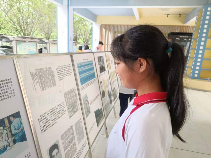 中山一中西區(qū)中學(xué)特別配合這次展覽,學(xué)校德育副主任鄧澤艷在11月14日利用周末時(shí)間與工作人員一起搭建了展架,整齊地?cái)[放在學(xué)校一樓書吧前人流量最大的廣場(chǎng)上。