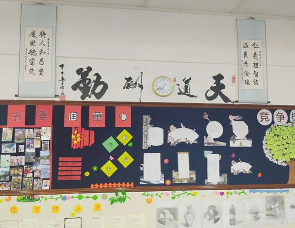 新學(xué)期伊始,該校班主任和全體學(xué)生對教室班級文化進(jìn)行精心設(shè)計(jì)與文化布置。該校各班制定了富有特色的班風(fēng)、班訓(xùn)、班主任寄語等,根據(jù)實(shí)際還增設(shè)了一些有特色的欄目。比如,公告欄、時事欄、誦讀欄、手抄報等。把“美”的教育滲透在班級文化的各個方面:在墻面上還設(shè)置了“小小書法家”“小小畫家”、“每周一星”“我真棒”、“學(xué)習(xí)園地”等區(qū)域,做到了讓“每一堵墻”成為“無聲的導(dǎo)師”。通過一輪的評比,每個年級都評出了一個一等獎、兩個二等獎和若干個三等獎。最后把文化凸顯的三個優(yōu)秀班級參加區(qū)級特色班級評選候選:分別是六(4)班、六(2)班和二(1)班。