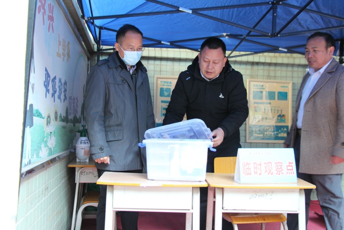 蘇文森先來到保安室,實(shí)地檢查安保措施落實(shí)情況,對(duì)值班保安提出了具體要求,希望保安同志們能堅(jiān)守崗位,不能輕易放進(jìn)無關(guān)人員,特殊情況進(jìn)校者必須消毒測(cè)溫、掃健康碼,要讓全校師生的安全感更有保障。在學(xué)校臨時(shí)觀測(cè)點(diǎn),蘇文森表示,檢測(cè)點(diǎn)防疫物資完備,衛(wèi)生清潔,布置科學(xué)合理,一定要按到防疫要求做好細(xì)心觀測(cè)。前往校醫(yī)室,蘇文森詳細(xì)詢問了防疫物資儲(chǔ)備情況以及學(xué)校師生近期是否存在發(fā)熱情況,蘇文森強(qiáng)調(diào),防疫工作依然十分嚴(yán)峻,不能放松警惕,一定要嚴(yán)防死守,措施到位,積極預(yù)防。來到學(xué)校食堂,蘇文森對(duì)食品安全臺(tái)賬進(jìn)行詳細(xì)檢查,并查看了食堂衛(wèi)生安全。就食品安全問題向?qū)W校食堂工作人員進(jìn)行宣傳,他要求一定不能購(gòu)置冷凍食材,嚴(yán)格防范新冠病毒,要切實(shí)保障食品安全。在巡視教師辦公室時(shí),蘇文森對(duì)教師進(jìn)行親切的問候并在學(xué)校三樓黨員活動(dòng)室召開教師座談會(huì),認(rèn)真傾聽了教師的工作感受和對(duì)學(xué)校的意見建議,教師們暢所欲言。屋外寒風(fēng)習(xí)習(xí),但是蘇文森的噓寒問暖令室內(nèi)暖意融融。