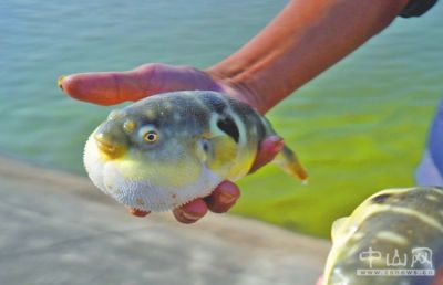 嘟嘴,胖腹,瞪眼,青背白肚,放在手中片刻,白白的肚子便鼓起來(lái),遠(yuǎn)遠(yuǎn)望去就像一個(gè)圓滾滾的氣球。1月15日下午,在海惠水產(chǎn)養(yǎng)殖基地,員工唐伯撐著小木船,劃到魚(yú)塘中央,提起喂料魚(yú)罾,將近10條河鲀魚(yú)放進(jìn)大盆中,供大家觀看。