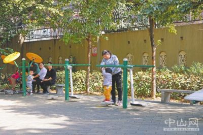 15日上午,村民在三鄉(xiāng)鎮(zhèn)橋頭村的健身場(chǎng)玩耍。本報(bào)記者 王云 攝