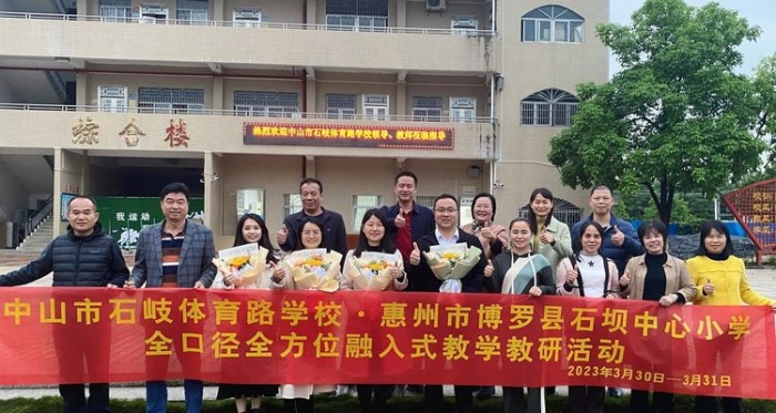 為切實(shí)貫徹好《廣東省教育廳關(guān)于進(jìn)一步推進(jìn)落實(shí)基礎(chǔ)全口徑全方位融入式幫扶工作》文件精神,發(fā)揮優(yōu)秀教師的示范引領(lǐng)、帶動輻射作用,切實(shí)加強(qiáng)與博羅縣石壩中心小學(xué)教育教學(xué)全方位交流,2023年3月30日—31日,中山市石岐體育路學(xué)校黨支部書記、校長孫華親自帶隊(duì),由學(xué)校行政與骨干教師組成的交流團(tuán)隊(duì)德育處主任陳立、教導(dǎo)處副主任劉瑜、唐海鳳和英語備課組長陳少丹等得力干將一同到博羅縣石壩中心小學(xué)開展主題為“結(jié)對幫扶促均衡,強(qiáng)化教研謀發(fā)展”全口徑全方位融入式教學(xué)教研活動,博羅縣教師發(fā)展中心掛職副主任郭洪亮應(yīng)邀出席了活動。