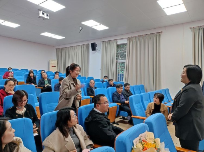 在一片熱烈的掌聲中,語數(shù)英分別開展了教學(xué)討論會。在會議中,老師們積極發(fā)表自己的意見,互相交流、探討,劉瑜老師,陳少丹老師、唐海鳳老師也分別傳遞了自己的教學(xué)理念、教學(xué)方法,給予了石壩中心小學(xué)老師們自己教學(xué)的經(jīng)驗(yàn)。為了更好地在教育教學(xué)的策略上幫助石壩中心小學(xué),陳立主任根據(jù)石壩中心小學(xué)的實(shí)際情況,為老師們帶來《如何落實(shí)低年級教育教學(xué)的策略》主題講座。陳立主任向老師們介紹了體育路學(xué)校的教育宗旨、教學(xué)成果,同時(shí),他根據(jù)學(xué)?!叭我惑w目標(biāo)導(dǎo)向”,認(rèn)為小學(xué)低段應(yīng)注重培養(yǎng)學(xué)生的興趣+習(xí)慣+思維。他講道,低年級是培養(yǎng)孩子學(xué)習(xí)興趣的關(guān)鍵期,也是培養(yǎng)良好學(xué)習(xí)習(xí)慣的關(guān)鍵期。對于低年級孩子學(xué)習(xí)思維的培養(yǎng),要引導(dǎo)自主探究,拓展學(xué)生思維的廣度;巧妙設(shè)置問題,發(fā)掘?qū)W生思維的深度;尊重學(xué)生,培養(yǎng)學(xué)生思維的獨(dú)創(chuàng)性,讓教育教學(xué)有實(shí)效。在陳立主任的分享后,老師們都頗有收獲。針對低年級教育教學(xué)的策略,陳立主任和石壩中心小學(xué)的老師們繼續(xù)深入討論,仔細(xì)研討,共同為培育孩子學(xué)習(xí)興趣、習(xí)慣、思維出謀劃策。