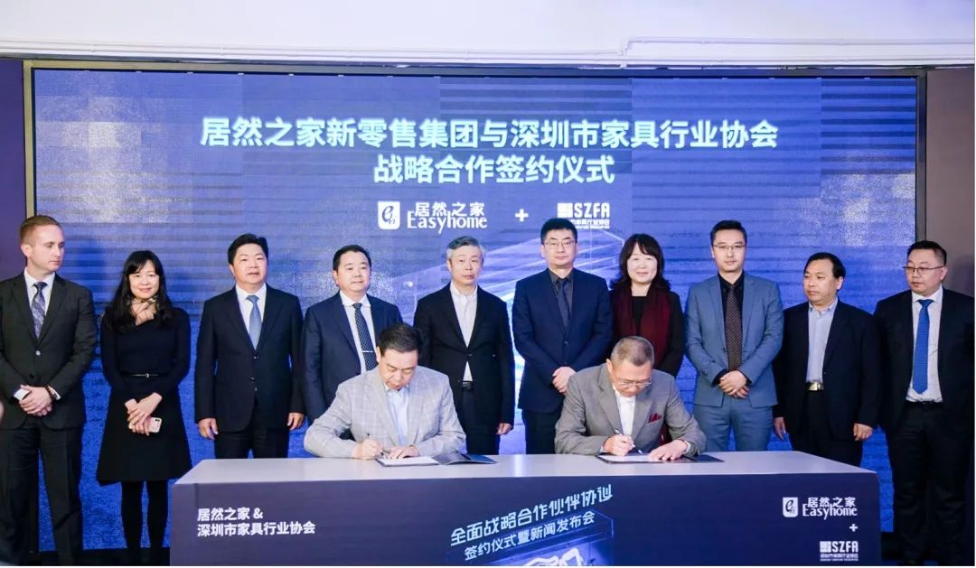 1月8日,居然之家與深圳市家具行業(yè)協(xié)會全面戰(zhàn)略合作伙伴簽約儀式暨新聞發(fā)布會在深圳家協(xié)總部隆重舉行。