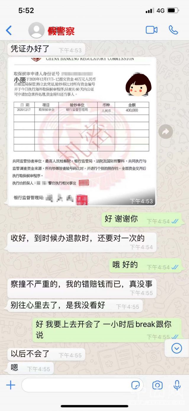 12月25日,小麗在對方“指導”下繼續(xù)向父母索要50萬元人民幣,引起父母的懷疑,經(jīng)“盤問”小麗后,發(fā)現(xiàn)被騙的真相,于是報警。目前,警方已立案偵查。