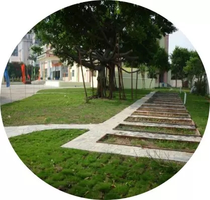 人是環(huán)境的產(chǎn)物,為使孩子們自然潛能得以健康生長,戶外活動場地寬闊舒展,有4棵歷史悠久的大榕樹、兒童沙池、兒童戲水池、戶外果園、有機菜園、跑道、大操場及戶外森林兒童樂園;有規(guī)范的戶外運動場,配置了大型室外玩具。風車藝術(shù)生態(tài)長廊、迷宮區(qū)、干濕沙區(qū)、種植區(qū)、泥巴廚房、攀爬區(qū)等。