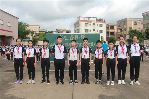 大會(huì)開始前,張敏靈老師宣讀了獲得“成學(xué)獎(jiǎng)”名單,受表彰的同學(xué)滿懷欣喜地依次走上領(lǐng)獎(jiǎng)臺(tái)。梁幸秋校長(zhǎng)和王瓊虹副校長(zhǎng),親自為中高年級(jí)前10名及中低年級(jí)前15名的優(yōu)秀學(xué)生頒發(fā)了“成學(xué)獎(jiǎng)”獎(jiǎng)牌,還為獲得“五成學(xué)子”獎(jiǎng)“德、智、體、美、勞”全面發(fā)展的學(xué)生頒發(fā)了獎(jiǎng)杯,并與他們合影留念。在燦爛的陽(yáng)光下,弼教學(xué)子胸前閃耀著光榮的獎(jiǎng)?wù)?,手舉著沉甸甸的獎(jiǎng)杯,這一刻值得紀(jì)念!