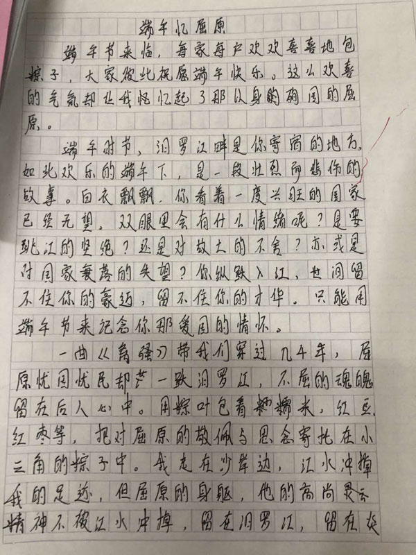 這次端午節(jié)主題活動內(nèi)容有:1、“粽子情,我們傳”。要求初一級學(xué)生在2020年6月25-27(端午假期)在家里包一次粽子、制作香囊、掛艾草。2、“傳經(jīng)典,誦祖國”。要求初二級學(xué)生以端午節(jié)為主題,朗誦一首詩歌(視頻拍攝)、寫一篇抒情文章、書寫一幅對聯(lián)。初一、初二級各班都積極開展了“端午主題”活動,讓學(xué)生感悟傳統(tǒng)文化的魅力,接受中華悠久文明的洗禮和傳統(tǒng)美德的熏陶,增強民族自豪感,用中華傳統(tǒng)節(jié)日引領(lǐng)同學(xué)們詩意成長。