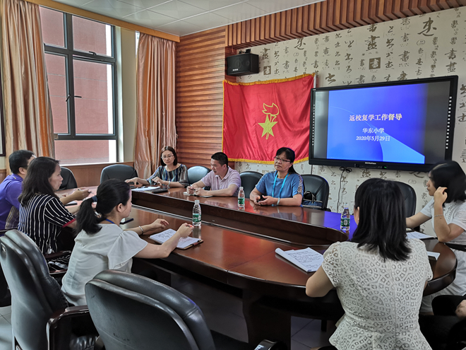 2020年5月29日,華東小學責任督學、坦田小學校長廖杏芳蒞臨華東小學針對學校返校復學工作進行責任督學經(jīng)常性督導檢查。李耀宗校長協(xié)同全體行政人員積極配合開展各項檢查工作。
