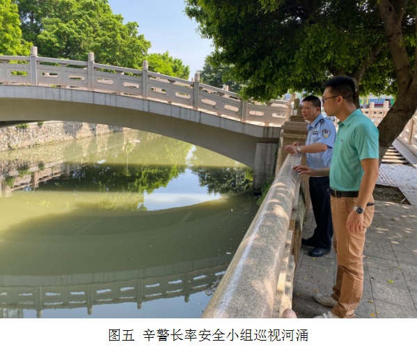 會后,辛警長與劉廣平校長、莫建山主任率領安全小組檢查了校園周邊的多家商店,檢查商品的來源和質(zhì)量,尤其是食品和玩具。安全小組巡查了周邊的河涌河兩岸的防溺水安全防護工作,東升河兩岸均布置了顯眼的警示牌,提醒附近居民不能游泳玩水。