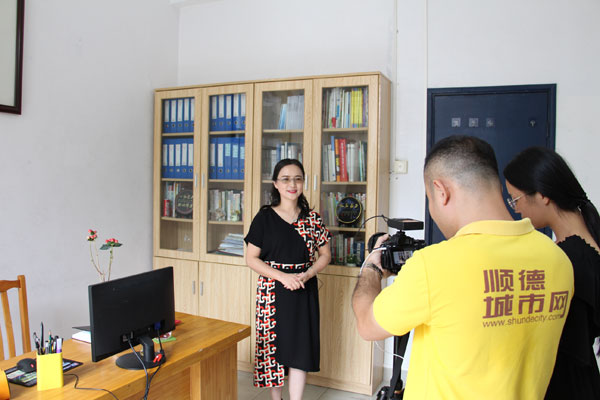 區(qū)教育局派順德城市網(wǎng)記者到陳村鎮(zhèn)初級中學(xué)采訪省名班主任李彩霞老師