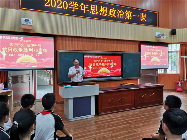 為了紀(jì)念中國人民抗日戰(zhàn)爭暨世界反法西斯戰(zhàn)爭勝利75周年,9月21日上午,陳村鎮(zhèn)中心小學(xué)開展了題為《銘記歷史,緬懷先烈》的校長思想政治第一課。龍斌校長主講,六年級全體同學(xué)和教師聆聽了此次校長思政課。