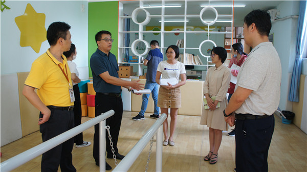 區(qū)特教中心領導和工作人員肯定了我校特教工作的開展和資源教室的規(guī)劃與使用,并提出了指導性建議,勉勵我校繼續(xù)做好特殊學生隨班就讀、送教上門服務工作,努力讓特殊學生享受公平而有質量的教育。
