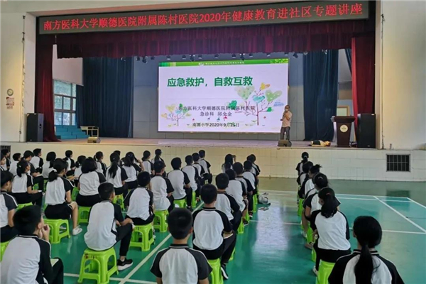 2020年9月25日下午4點(diǎn),南方醫(yī)科大學(xué)順德醫(yī)院附屬陳村醫(yī)院急診科邱全金醫(yī)生為南涌小學(xué)六年級(jí)師生帶來(lái)一節(jié)別開(kāi)生面的急救課。