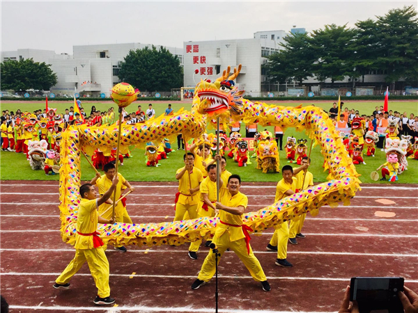 2020年9月29 日上午,2020年陳村鎮(zhèn)中小學田徑運動會在陳惠南紀念中學田徑場隆重開幕,青云小學師生100多人的武術龍獅節(jié)目《龍騰獅舞揚武威》作為指定的唯一一個表演節(jié)目參加本次開幕式。