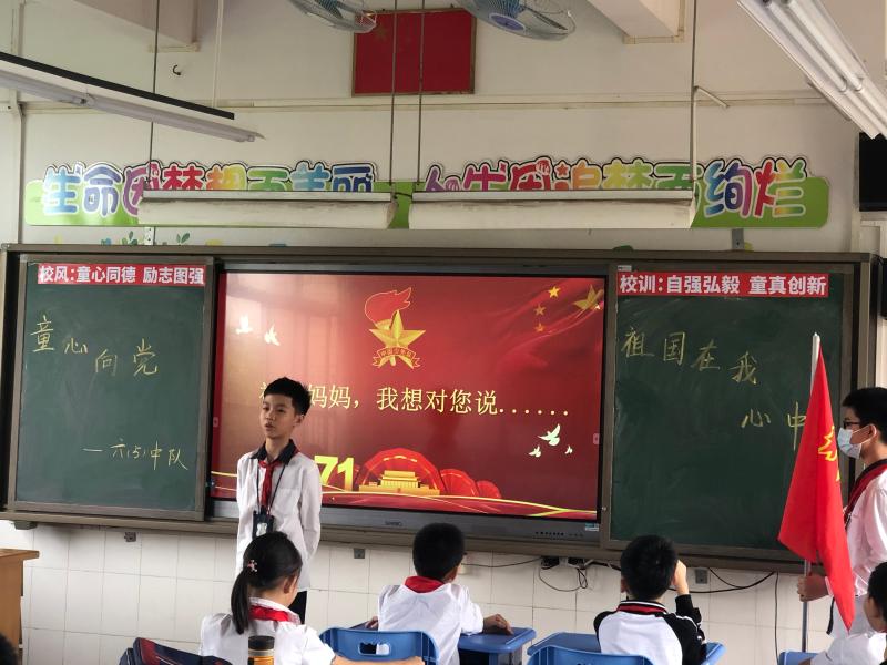 緊接著,各中隊組織開展了“童心向黨,祖國在我心中”主題中隊活動,通過“向國旗敬禮”、“我為祖國媽媽唱首歌”、“學(xué)習(xí)新中國史”等形式多樣,內(nèi)涵豐富的活動,共慶祖國71華誕。在中隊活動中,隊員們認真了解新中國發(fā)展史、齊唱愛黨愛國紅歌,各小隊還以朗誦、演講、歌唱等多種形式來表白祖國,歌頌祖國,為祖國媽媽送上自己的一份生日祝福。