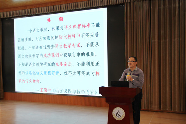 此次活動共分為4個環(huán)節(jié):先是對“文本解讀”評比活動的優(yōu)秀作品進行頒獎,再由各校代表分享他們的文本解讀思路。接下來是周華章老師開展講座,最后教研室劉俊老師、語文教研組李珊珊老師對本次活動進行總結(jié)。