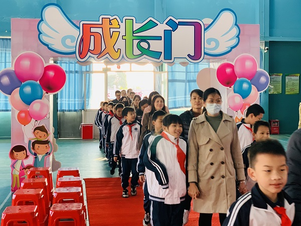 活動開始,家長們牽著孩子的手一起穿過成長門,象征著孩子走過人生第一個十年,已成功踏入人生新征程――進(jìn)入了青少年時期。