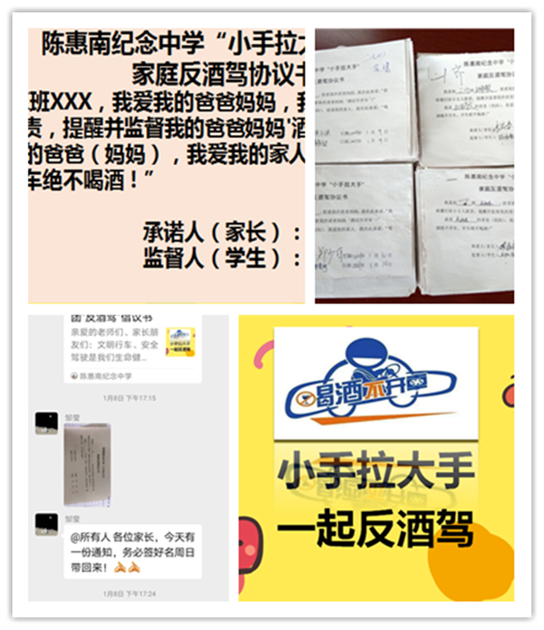 此外,陳惠南紀(jì)念中學(xué)還通過學(xué)校網(wǎng)站、電子屏、師生和家長微信群宣傳“反酒駕”,擴(kuò)大了“小手拉大手反酒駕”主題教育的影響力。