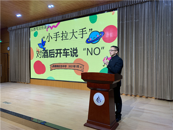 1月6日,陳惠南紀(jì)念中學(xué)通過學(xué)校微信公眾號(hào)發(fā)出《陳惠南紀(jì)念學(xué)校教育集團(tuán)反酒駕倡議書》,倡議全體師生、家長朋友自覺宣傳“反酒駕”、自身作則“反酒駕”,文明行車,安全出行。同時(shí),陳惠南紀(jì)念中學(xué)德育處副主任曾大勇在教職工會(huì)議上,為全體教師舉辦了一場“反酒駕”專題教育講座。