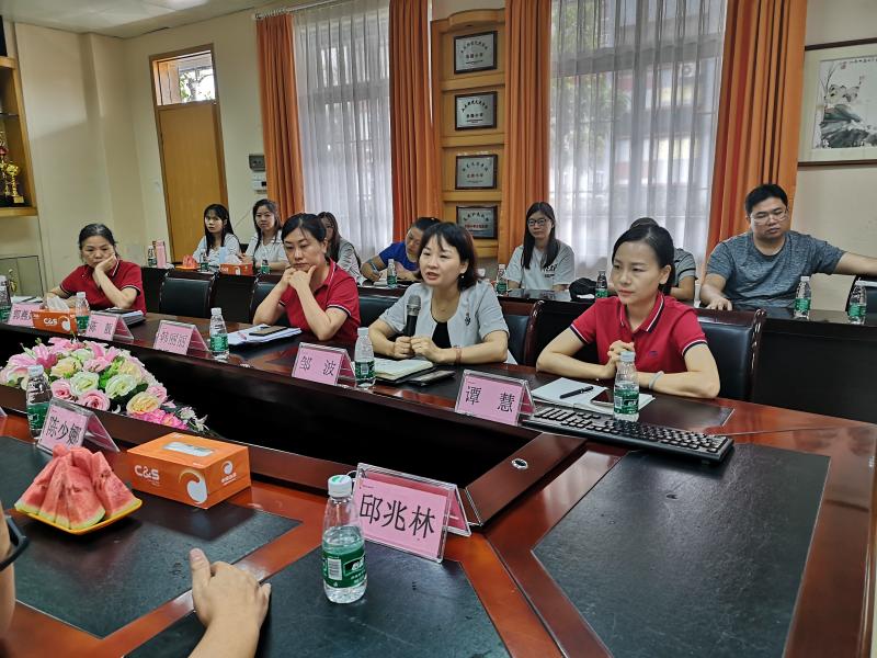 首先,我校領(lǐng)導(dǎo)班子和訪(fǎng)問(wèn)團(tuán)在會(huì)議室進(jìn)行了辦學(xué)經(jīng)驗(yàn)交流分享。分享會(huì)首先由我校譚慧副書(shū)記對(duì)我校的教育教學(xué)和辦學(xué)特色進(jìn)行了詳細(xì)而全面的經(jīng)驗(yàn)分享,如:一、“五育”并舉提素養(yǎng):如何從德育、智育、體育、美育和勞育五大舉措中,加強(qiáng)提升學(xué)生的綜合素養(yǎng)?二、“實(shí)”教學(xué)見(jiàn)成效:如何進(jìn)行學(xué)科管理,夯實(shí)學(xué)科基礎(chǔ),有效提高教學(xué)質(zhì)量?“科創(chuàng)”服務(wù)教學(xué):如何進(jìn)行綜合科組的團(tuán)隊(duì)建設(shè),并讓科技創(chuàng)新為學(xué)校教學(xué)服務(wù)?