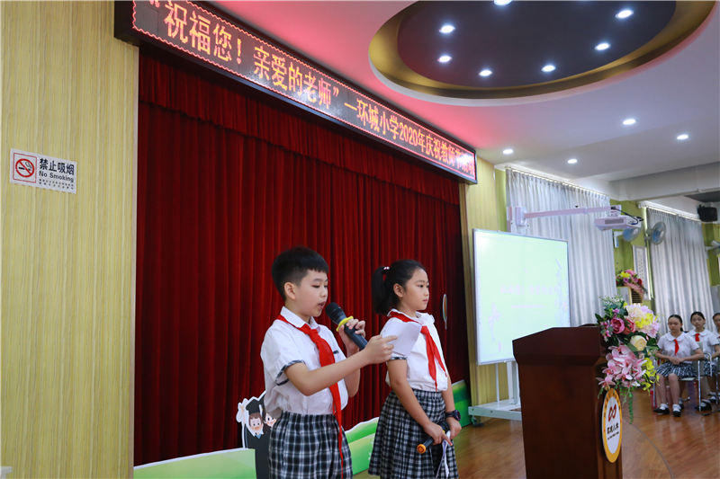 9月10日當(dāng)天,大隊部組織全校師生,在五樓多媒體室進(jìn)行慶祝教師節(jié)儀式活動。早上8:20,兩位可愛的小主持開場后,學(xué)生代表――陳璨璨同學(xué)作專題講話,她稱贊老師們是“最可愛的人!”,祝愿老師們節(jié)日快樂,身體健康,桃李滿天下!