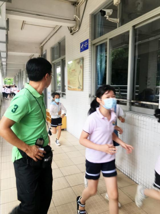 警報響起前五分鐘,落級行政及相關(guān)人員奔赴各樓層,正副班主任就位整頓好學(xué)生紀律,對學(xué)生進行必要的教育,讓他們明確疏散路線動作,讓每個學(xué)生都了解本次活動的內(nèi)容和意義。