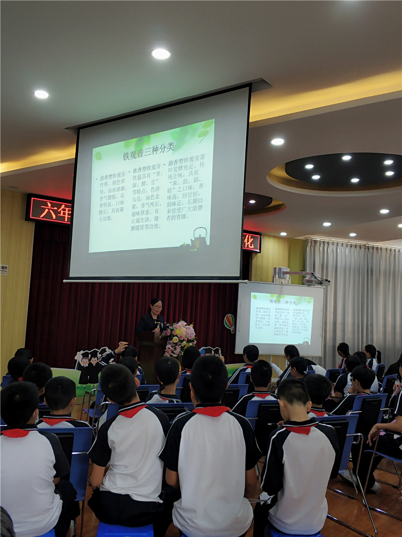 在這秋風(fēng)送爽,丹桂飄香的日子里,我校邀請(qǐng)了六年級(jí)家長代表廖碧華女士,為我們的孩子上一節(jié)專業(yè)的茶文化課。 廖碧華女士曾任環(huán)城小學(xué)義工隊(duì)長,她是福建人,從小就與茶結(jié)下了不解之緣,因而我們特意邀請(qǐng)她過來為我們上一節(jié)專業(yè)的茶文化課。廖女士準(zhǔn)備很充分,做了精美豐富的PPT,從茶的種類、茶的功效、茶葉名字的由來(背后都有吸引人的故事)以及如何沖泡各種的茶展開介紹。廖女士從各個(gè)方面和我們深入探討茶文化,還帶來了精彩的茶文化詩篇。廖碧華女士圖文并茂,語言精準(zhǔn)簡練為孩子授課,她還帶來各種茶葉樣本,讓孩子認(rèn)識(shí)茶葉,把茶豐富的文化內(nèi)涵呈現(xiàn)給大家,讓我們對(duì)茶有了深入全面的了解,真是收益匪淺。 讓家長走進(jìn)課堂,讓學(xué)生的視野更開闊,讓我們的學(xué)習(xí)內(nèi)容更豐富,這樣的形式是值得推廣的。感謝廖碧華為我們做精心的準(zhǔn)備,呈現(xiàn)一節(jié)精致豐富的專業(yè)課。 知識(shí)來源于生活又高于生活,學(xué)習(xí)就是為了更好地生活。讓我們的孩子都走進(jìn)生活好好學(xué)習(xí),提升生活品味,讓生活更美好!
