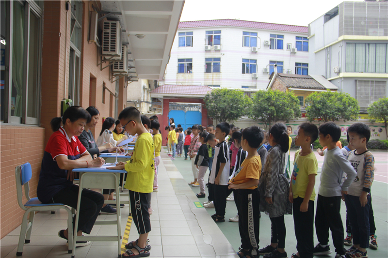 下午兩點半,驗收活動正式開始!一年級的孩子們在本班語文老師的帶領(lǐng)下排著隊依次站在主考老師面前,一絲不茍地讀著拼音。