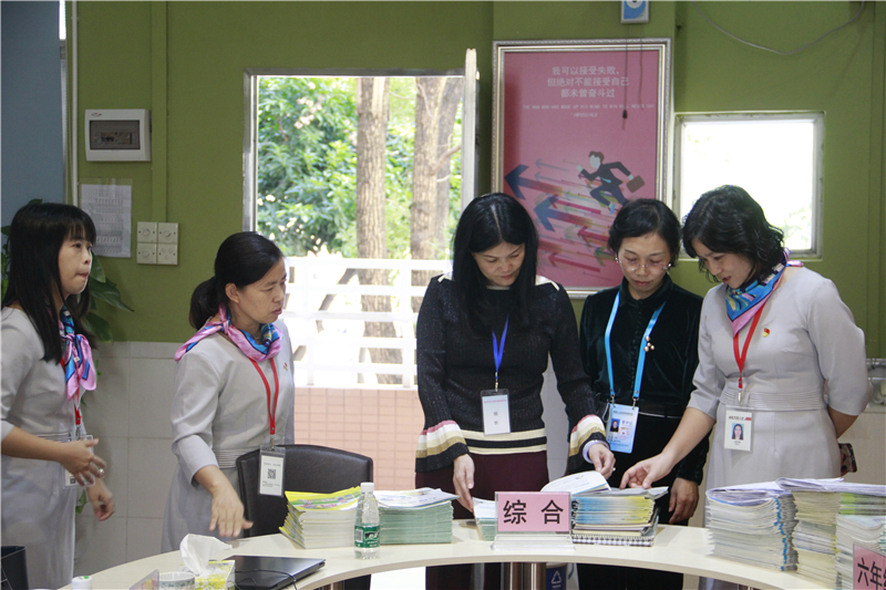 聽課結(jié)束后,評估專家組來到會議室,仔細(xì)核驗我校各項檔案資料,及時、耐心地與迎檢行政溝通檢查情況。專家們還通過查閱各科老師的教學(xué)用書、備課本、聽課本、輔導(dǎo)記錄,以及學(xué)生的常規(guī)作業(yè),從“備、講、批、輔、考、研”等六大方面入手,深入了解我校教學(xué)常規(guī)工作的落實情況。