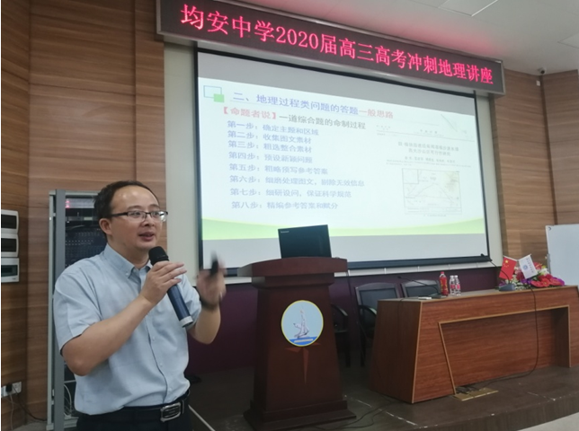 6月20日下午,順德區(qū)地理教研員吳俊和老師蒞臨均安中學(xué)開展題為《用思維和智慧點(diǎn)亮高考之路――地理成因類與過程類問題的解題技巧》的高考地理講座,為我校地理備考進(jìn)行最后沖刺明確了方向。我校高三年級(jí)全體文科生以及高三地理備課成員都參加了此次講座。