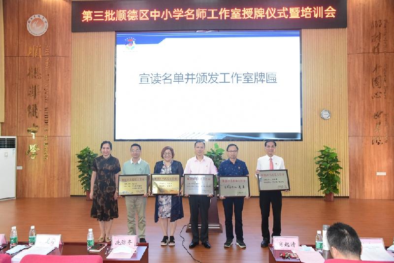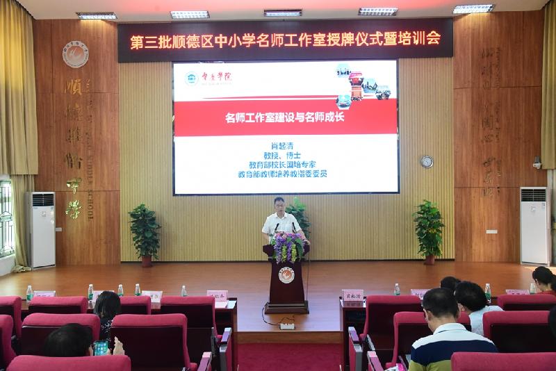 為加快名師隊伍建設,搭建好教師共同發(fā)展平臺,6月30日,順德區(qū)第三批中小學名師工作室授牌儀式在順德區(qū)華僑中學舉行。區(qū)教育局冼彌冬副局長、區(qū)教育局組織人事科劉進華科長及曾麗輝副科長、區(qū)教育發(fā)展中心教師發(fā)展研究室唐信焱主任、教育部校長國培專家肖起清教授等領導、嘉賓出席會議。
