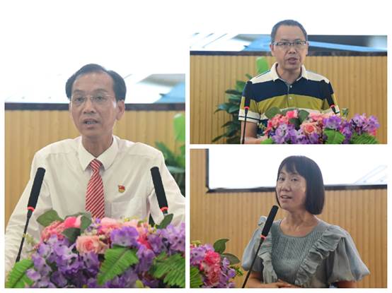 隨后,華僑中學吳劍平校長、樂從中學費貞元老師、容桂海尾小學陳翠校長分別代表名校長工作室、名班主任工作室、名教師工作室首席主持人代表上臺發(fā)言。吳劍平校長認為,順德正處于教育高質量發(fā)展的大好時代,名校長要做好發(fā)動機、傳導器和宣傳隊,培育人才、引領未來;費貞元老師提出“乘大灣區(qū)東風,立順德德育風格”,在今后的工作室建設中盡顯名師教育初心、專業(yè)修煉及名師擔當;陳翠校長則強調名師除了進行“術”的傳遞,更應有“道”的開悟,呼吁各位名師永不停止學習和思考,堅守內心精神信念。