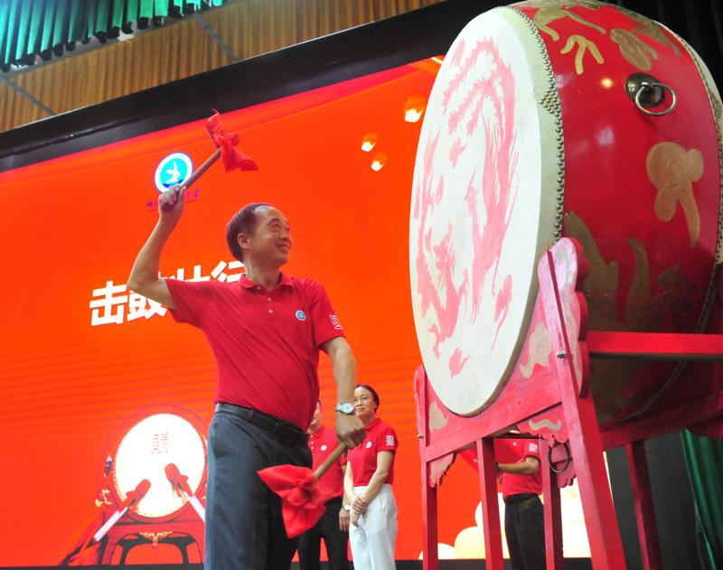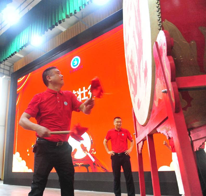 羅桂根校長、李燕副書記、張超副校長、朱江林副校長為2020屆高三學(xué)子出征高考擊鼓壯行!此刻,掌聲與鼓聲齊飛,紅旗共戰(zhàn)袍一色。