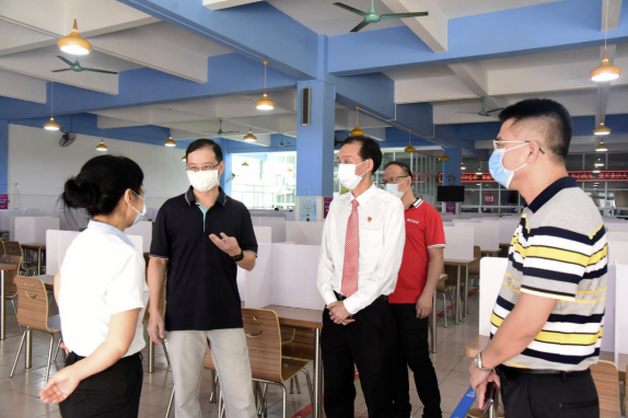2020年8月29日上午,順德區(qū)教育局黨組書記陳宇瑩偕同區(qū)教育局辦公室副主任羅泉良來到順德華僑中學(xué),對(duì)華僑中學(xué)校園疫情防控和新學(xué)期開學(xué)準(zhǔn)備工作進(jìn)行督查檢查。學(xué)校黨總支書記、校長(zhǎng)吳劍平等行政人員陪同督導(dǎo)檢查。