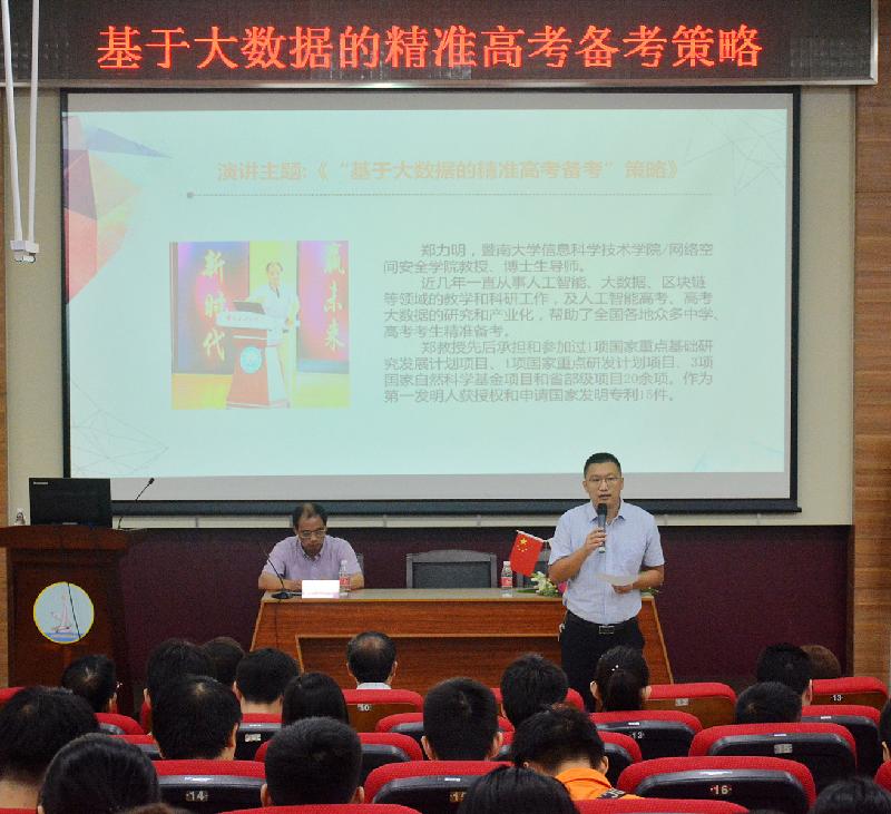 鄭力明教授從高考競爭環(huán)境分析、高考大數(shù)據(jù)精準備等幾個環(huán)節(jié)展開他的專題報告。鄭力明教授提到,當今社會快速發(fā)展,對人才的要求也越來越高,現(xiàn)在每年的高校畢業(yè)生人數(shù)達到驚人的數(shù)字,就業(yè)壓力越來越大,在這樣的大環(huán)境下考一個優(yōu)質(zhì)的大學顯得尤為重要,那借助大數(shù)據(jù)來進行高考精準備考,老師能夠精準地教、學生能夠精準地學,無疑能夠起到事半功倍的效果,為高考添上騰飛的翅膀。
