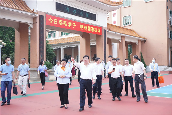 8月31日下午,佛山市副市長(zhǎng)許國(guó)、市政府副秘書(shū)長(zhǎng)鄧燦榮、市教育局二級(jí)調(diào)研員李忠、順德區(qū)副區(qū)長(zhǎng)蔡偉、順德區(qū)教育局黨組書(shū)記陳宇瑩、容桂街道黨工委副書(shū)記、街道辦事處主任歐勝軍、順德區(qū)容桂街道黨工委委員歐陽(yáng)雪喬、順德區(qū)教育局基礎(chǔ)教育科科長(zhǎng)陳永剛等市、區(qū)領(lǐng)導(dǎo)到容山中學(xué)檢查秋季學(xué)生返學(xué)工作。