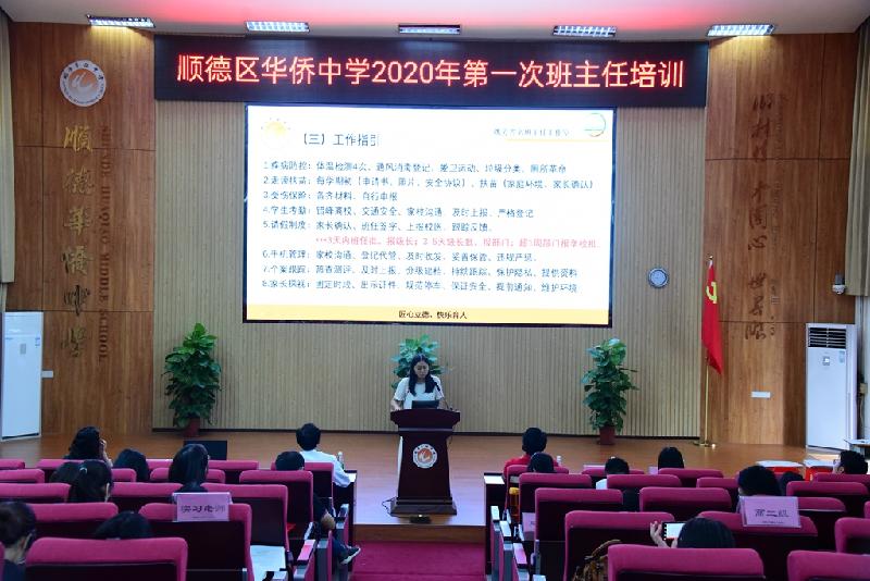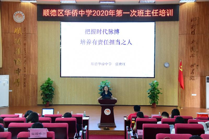 9月11日上午,經(jīng)過前期精心準(zhǔn)備,順德華僑中學(xué)2020-2021學(xué)年第一學(xué)期第一次班主任培訓(xùn)暨第六次班主任論壇如期舉行。學(xué)校黨總支書記、校長吳劍平先生,主管德育的張映紅副校長、學(xué)生發(fā)展處姚芳主任和徐啟桉副主任、校團(tuán)委嚴(yán)放之書記和林祖怡副書記、全體級(jí)長和班主任、心理專職教師、德育團(tuán)隊(duì)相關(guān)人員、全體華師的本科和研究生實(shí)習(xí)生參加了此次培訓(xùn)。