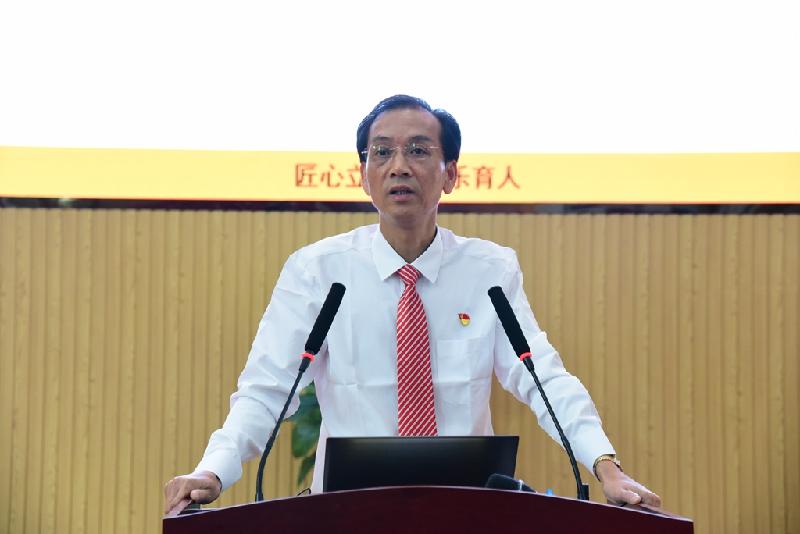 第五個(gè)環(huán)節(jié)是“期望與勉勵(lì)”。學(xué)校黨總支書記、校長吳劍平先生代表學(xué)校,對(duì)全體德育人的辛勤付出和所取得的各項(xiàng)成績(jī)予以高度評(píng)價(jià)和充分肯定。他勉勵(lì)大家,以“立德樹人”為己任,奮進(jìn)擔(dān)當(dāng)為路徑,恪盡職守、樂于奉獻(xiàn)、團(tuán)結(jié)合作、共同進(jìn)步。他指出,只有教師隊(duì)伍自身素質(zhì)高,才能培養(yǎng)出高素質(zhì)的人才。因此,他對(duì)全體年輕的班主任提出了“珍惜機(jī)會(huì)、加強(qiáng)學(xué)習(xí),研究理論、加強(qiáng)實(shí)踐,培養(yǎng)能力、提升素養(yǎng)”的要求和期望。