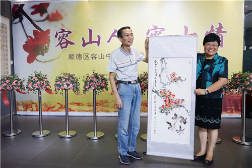 容桂街道黨工委副書(shū)記、辦事處主任歐勝軍、容桂街道黨工委副書(shū)記劉英華、順德區(qū)教育局副局長(zhǎng)冼彌冬、容桂街道宣傳文體旅游辦公室主任陳奮發(fā)、原廣州美院版畫(huà)系主任、廣州美術(shù)學(xué)院教授李全民、容山中學(xué)校友聯(lián)誼會(huì)榮譽(yù)會(huì)長(zhǎng)李任賢、容山中學(xué)校友聯(lián)誼會(huì)副會(huì)長(zhǎng)譚耀基等領(lǐng)導(dǎo)、校友嘉賓出席了開(kāi)幕式并為書(shū)畫(huà)展作剪彩儀式。