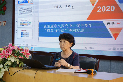 在講座環(huán)節(jié),王薔教授以“在主題意義探究中,促進學(xué)生‘得意與得語’協(xié)同發(fā)展”為題,高屋建瓴地提出語言的教育要避免鐘擺效應(yīng),走極端,在教學(xué)傳承上,切忌“Throw the baby out with the bath water”。教師要以始終關(guān)注培養(yǎng)學(xué)生正確的價值觀、必備品格及關(guān)鍵能力的核心素養(yǎng)為己任。王教授強調(diào)英語課程目標(biāo)的轉(zhuǎn)型,廣大教師要關(guān)注學(xué)科的育人價值、 學(xué)生的發(fā)展思維和核心素養(yǎng)的落地,在重組課程內(nèi)容的同時要注重以主題為引領(lǐng)、以語篇為依托。為了讓講座更深入淺出,王教授以具體的課堂教案為范例,點對點講解如何在實際教學(xué)中探究主題意義,落實各項教育教學(xué)目標(biāo)。