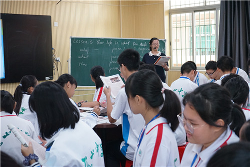 在課例展示中,英語科組萬娜青老師帶領(lǐng)高一(6)班的學(xué)生一起學(xué)習(xí)了北師大新版教材必修一第一單元的第三課Your Life Is What You Make It。萬老師的課堂以小組合作形式,充分運用新課標(biāo)理念,層層推進,幫助學(xué)生解讀文本,讓學(xué)生在語篇中既收獲了語言知識,又受到了正確價值觀的熏陶。