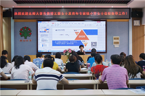 9月25日,北京師范大學著名教授、學術帶頭人、北京師范大學外文學院外語教育與教師教育研究所所長王薔女士及外語教育與外語教師教育青年專家錢小芳教授受邀來我校指導英語教育教學工作。王教授就如何有效實施北京師范大學出版的《高中英語》新教材教學、落實學科素養(yǎng)的培育、實現(xiàn)從知識為核心的課堂教學向以素養(yǎng)為核心的課堂教學轉變等方面以全新視角對英語科組老師進行了系統(tǒng)的指導。