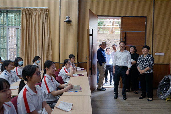 何書記一行在區(qū)校長的陪同下走訪學(xué)校功能場(chǎng)室