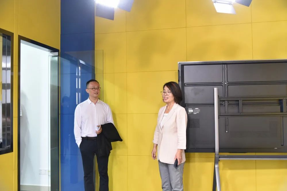訪問(wèn)團(tuán)一行到達(dá)目的地后,便在南沙區(qū)教育局教育管理科科長(zhǎng)王敏、廣州外國(guó)語(yǔ)學(xué)校附屬學(xué)校校長(zhǎng)劉梅、黨支部書記潘小斌、副校長(zhǎng)嚴(yán)明堂、王春強(qiáng)等的陪同下,先后參觀了學(xué)校的宿舍、飯?zhí)?、物理?shí)驗(yàn)室、外語(yǔ)情景室、圖書館、校園電視臺(tái)等場(chǎng)室。