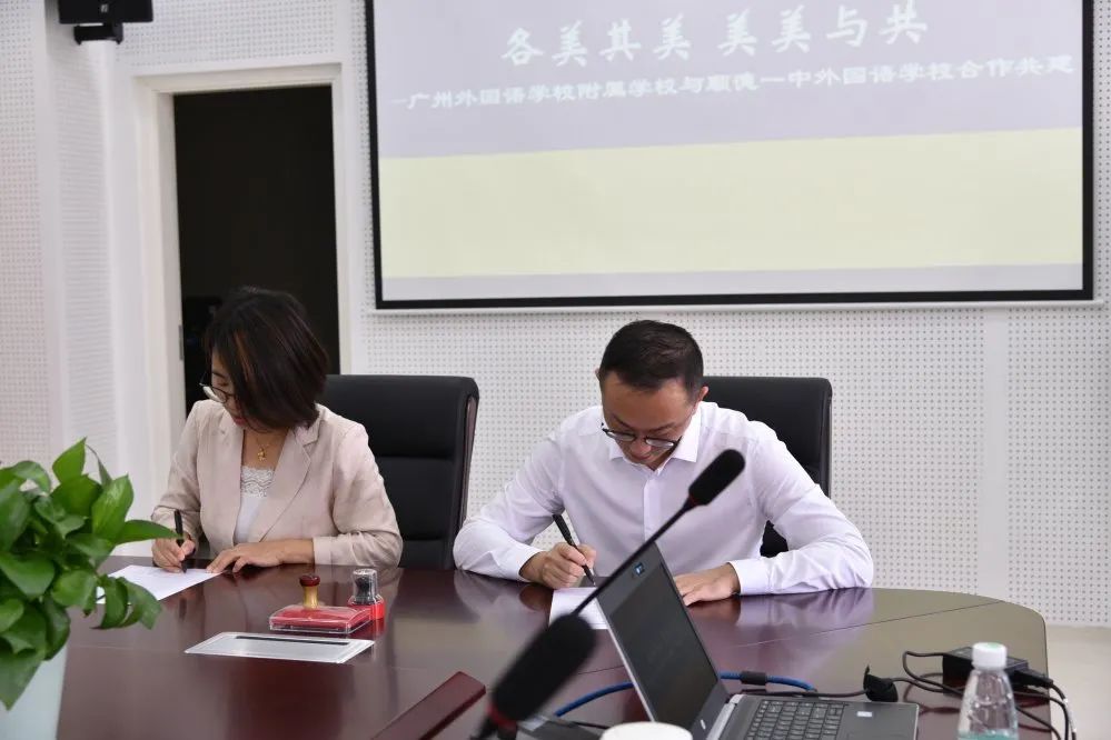 隨后,廣州外國(guó)語(yǔ)學(xué)校附屬學(xué)校安排了簡(jiǎn)單而隆重的締結(jié)姊妹校簽約儀式,儀式由五個(gè)環(huán)節(jié)組成。