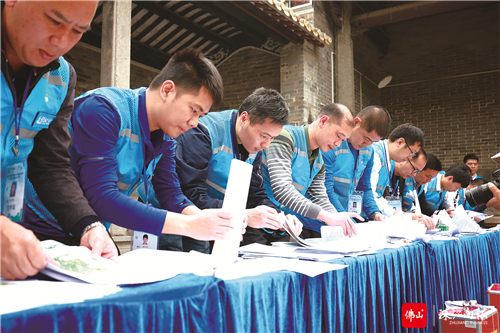 北滘桃村村改最終以99.7%的同意率通過。圖為村改工作人員正在點(diǎn)票。/北滘村改辦供圖